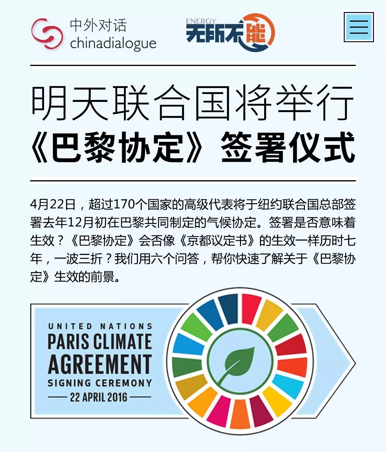 更多關於《巴黎協定》生效過程和前景的資訊,點擊文末“閱讀原文”查看《明天聯合國將舉行《巴黎協定》簽署儀式》